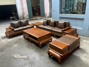 Đặt mua Bộ Sofa gỗ hương đá phun màu óc chó