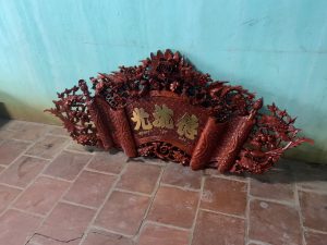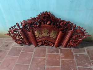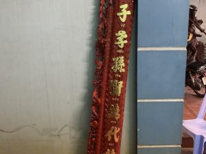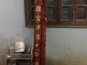| Kích thước (cm) | hoành phi 197×69 dày 6 cm; câu đối 197×28 dày 4 cm |