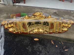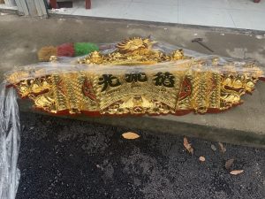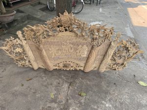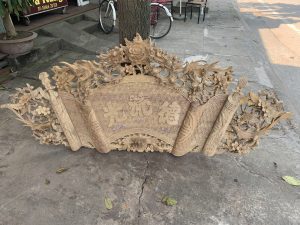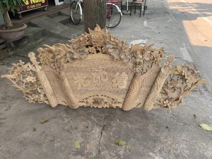 | Kích thước (cm) | hoành phi 197×69 dày 4 cm; câu đối 197×28 dày 4 cm |