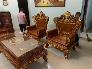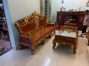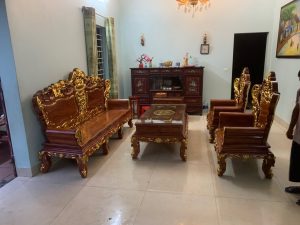 Chương liền toàn bộ, đục hoa lá cây - Hàng gồm6 món,2 ghế đơn, 1 đoản dài, 2 ghế đôn và 1 bàn