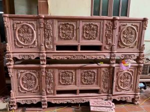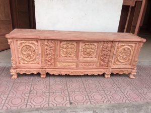 Đặt mua Kệ tivi louis hoa hồng đục tay gỗ hương đá