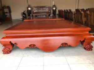 Sập Nằm Chân Quỳ Đục Trơn Gỗ Gụ