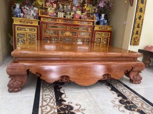 Sập Nằm Chân Quỳ Đục Trơn Gỗ Hương Đá Sản phẩm