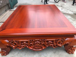 Sập Nằm Chân Quỳ Đục Ngũ Phúc Gỗ Gụ