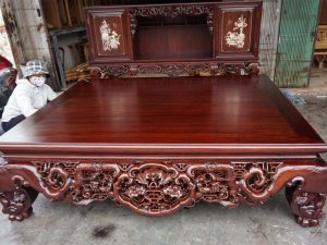 Sập Nằm Chân Quỳ Đục Ngũ Phúc Gỗ Gụ